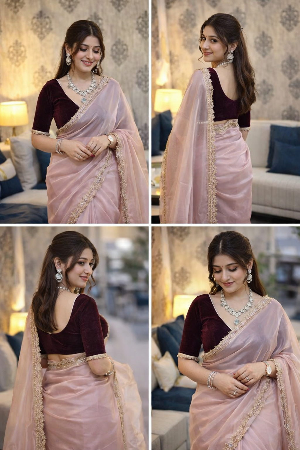 ✅ BLOUSE : heavy plain velvet WITH lace border work